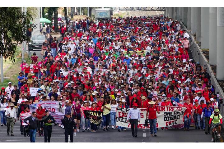 CIUDAD DE MÉXICO, 31MAYO2024.- Maestros de la Coordinadora Nacional de Trabajadores de la Educación (CNTE) marcharon del metro Normal al Zócalo capitulo, en donde mantienen su campamento, para exigir el aumento salarial, derogación de la Reforma Educativa, y basificación. FOTO: GALO CAÑAS/CUARTOSCURO.COM