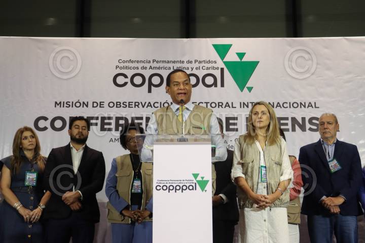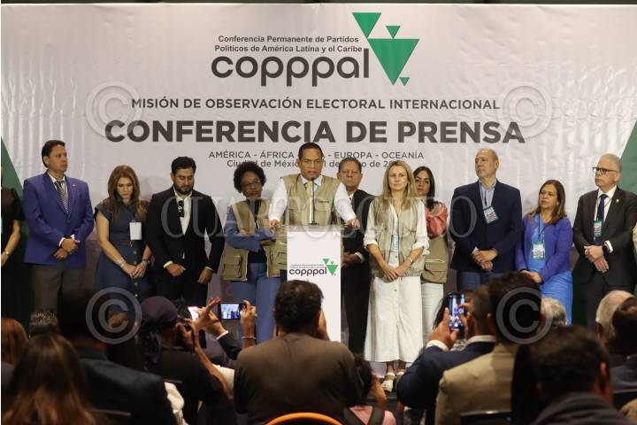 CIUDAD DE MÉXICO, 31MAYO2024.- Dolores Gandulfo, directora del observatorio electoral de la Conferencia Permanente de Partidos Políticos de América Latina y el Caribe (COPPPAL), y César Valentín, jefe de Misión Misión de Observación Electoral Internacional, encabezaron la conferencia de prensa de la Misión de Observación Electoral Internacional FOTO: GALO CAÑAS/CUARTOSCURO.COM