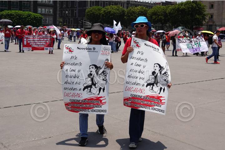 CIUDAD DE MÉXICO, 07JUNIO2024.- Maestros de la Coordinadora Nacional de Trabajadores de la Educación (CNTE), realizaron una marcha que partió del Ángel de la Independencia y culminó en el Zócalo capitalino, esto con el objetivo de presionar a las autoridades ante su demanda de aumento salarial. FOTOS: ROGELIO MORALES /CUARTOSCURO.COM