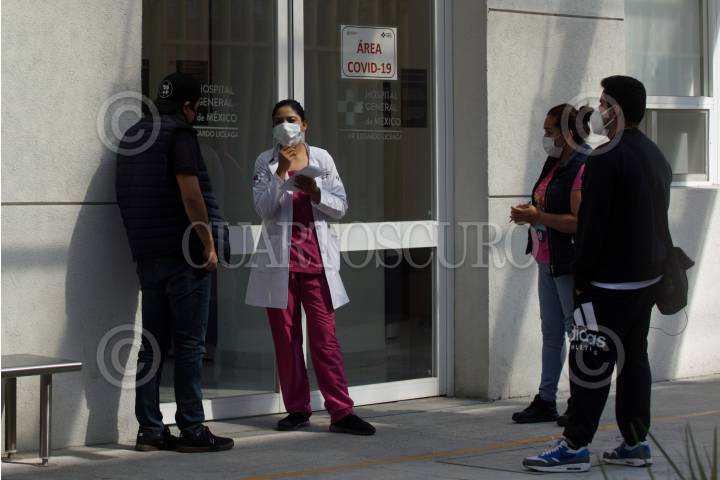 Familiares escuchan noticias sobre sus pacientes internados por covid-19 en el Hospital General de México.