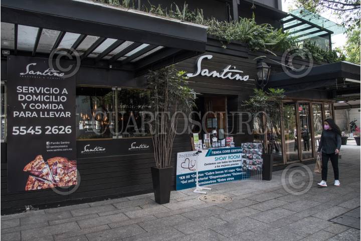 Un local de comida de avenida Masaryk ofrece productos de salud para generar ingresos durante el semáforo rojo por covid-19.