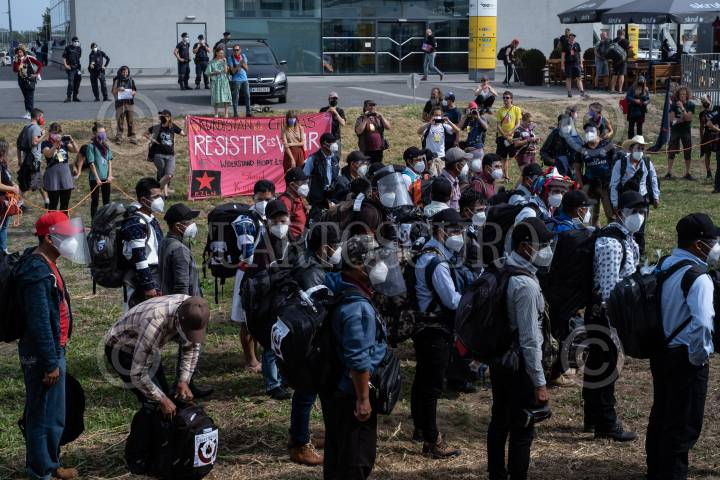 El segundo contingente de la Fuerza Aérea Zapatista, conformada por 70 hombres, aterrizó en el Aeropuerto de Viene, para integrarse a la "Gira por la Vida".
