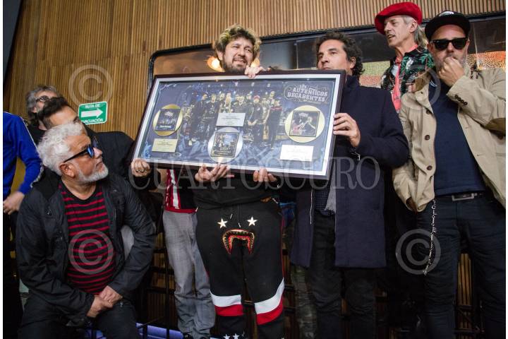 CIUDAD DE MÉXICO, 07OCTUBRE2019.- Los Auténticos Decadentes, grupo de Rock Argentino, anunció en conferencia de prensa su tour "Fiesta Nacional", el cual se presentará en Plaza Condesa. Además recibieron disco de oro por parte de su compañía disquera. FOTO: VICTORIA VALTIERRA /CUARTOSCURO.COM