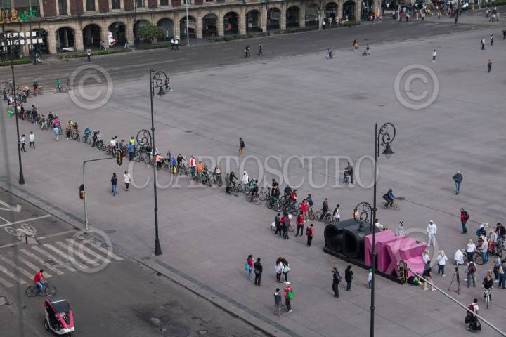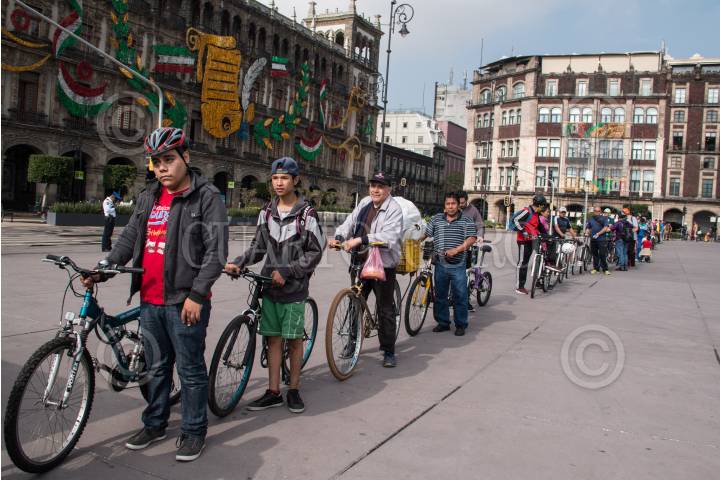 CIUDAD DE MÉXICO, 22SEPTIEMBRE2018.- Decenas de capitalinos, arribaron al primer cuadro del Zócalo, ya que hasta las 20:00 horas será peatonal y ciclo vía en conmemoración del Día Mundial Sin Auto. Aprovechando también a formarse para adquirir la placa para bicicletas con el logo de CDMX que se entregaron en varios puntos de la ciudad incluyendo en Zócalo. FOTO: ANDREA MURCIA /CUARTOSCURO.COM