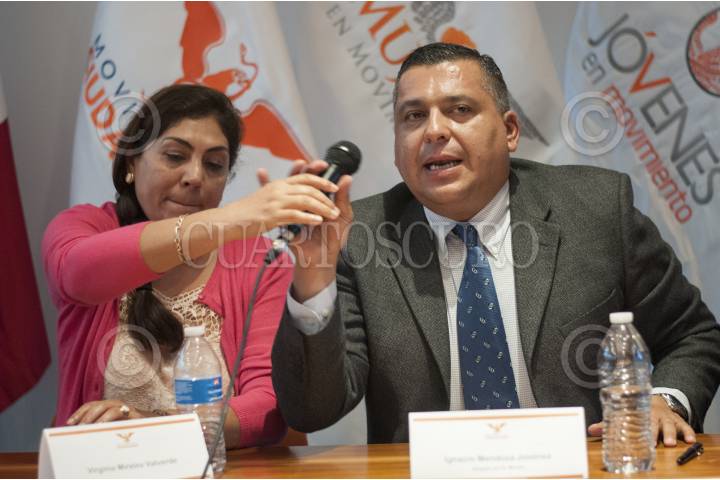 MÉXICO, D.F., 04NOVIEMBRE2015.- Virginia Mireles Valverde e Ignacio Mendoza, hermana y abogado de José Manuel Mireles, durante la conferencia que ofrecieron en la sede de Movimiento Ciudadano para hablar sobre la situación del ex líder de las autodefensas de Tepalcatepec, Michoacán, quien se encuentra preso desde el 27 de junio de 2014 por el delito de portación de arma de uso exclusivo del ejército. El abogado Mendoza puntuó que presentó un argumento de exclusión de delito y un error de prohibición que podría dejar libre a Mireles en diciembre próximo. FOTO: DIEGO SIMÓN SÁNCHEZ /CUARTOSCURO.COM