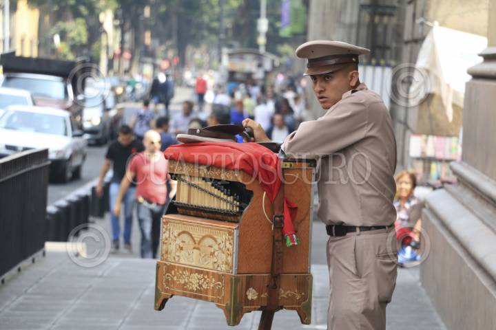 CIUDAD DE MÉXICO, 17OCTUBRE2016.- Un organillero trabaja en las calles del Centro Histórico. Actualmente, más de 200 trabajadores de este oficio, que data del Porfiriato, se dividen las calles de la ciudad en parcelas de 250 metros. FOTO: SAÚL LÓPEZ /CUARTOSCURO.COM