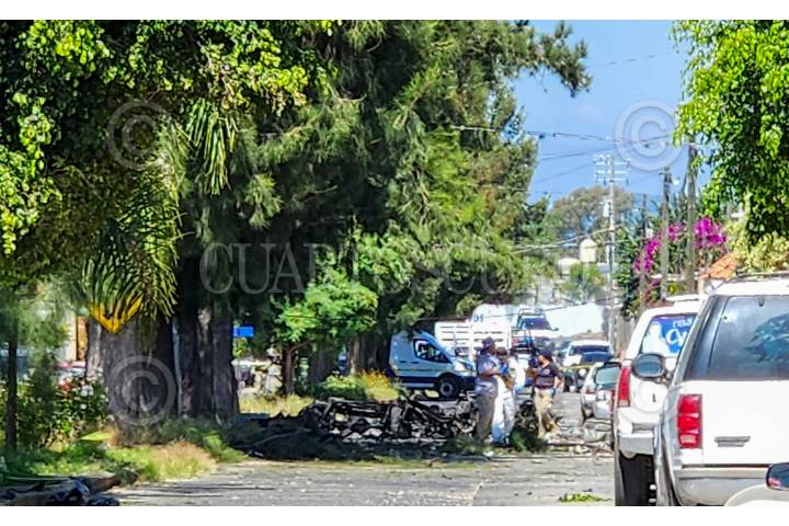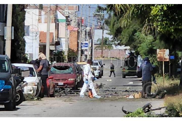 ACÁMBARO, GUANAJUATO, 24OCTUBRE2024.- Cerca de las 7 de la mañana un auto exploto afuera de las instalaciones de Seguridad Pública de Acámbaro, Guanajuato. La explosión provocó daños en autos de vecinos, domicilios, ventanas y 3 policías resultaron heridos, dos hombres y una mujer. Los hechos en la avenida Los Pinos casi esquina República. FOTO: DIEGO COSTA/CUARTOSCURO.COM