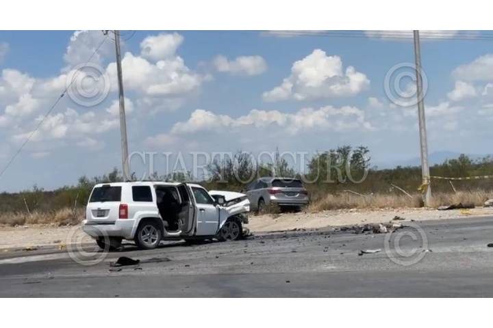 MONCLOVA, COAHUILA, 14JUNIO2024.- El equipo de avanzada de Claudia Sheinbaum, presidenta electa, tuvo un fuerte percance vehicular contra una camioneta Patriot mientras circulaba por el Libramiento Eliseo Mendoza Berrueto. A consecuencia del impacto una mujer que viajaba como copiloto en la camioneta murió de manera instantánea mientras que parte del equipo de Sheinbaum resultó lesionado. FOTO: REDES SOCIALES/CUARTOSCURO.COM