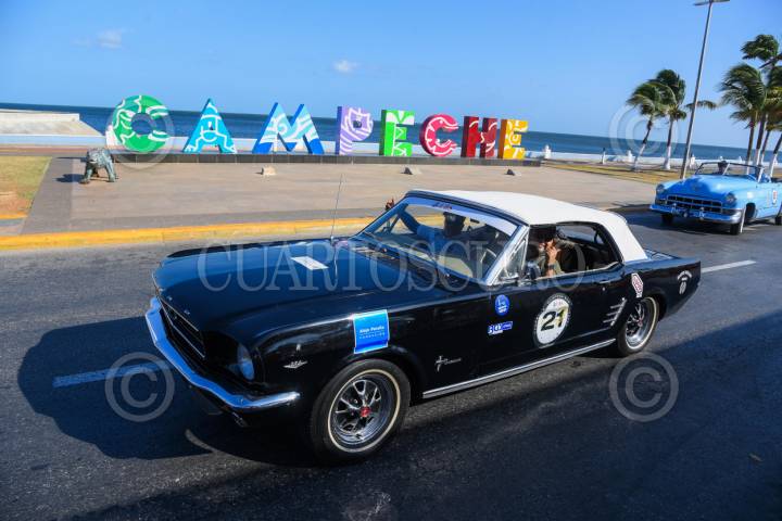 CAMPECHE, CAMPECHE, 03ABRIL2025.- El Malecón de Campeche fue escenario del banderazo de salida de autos clásicos que participan en el Rally Maya en su onceava edición y que recorren la península de Yucatán. FOTO: MICHAEL BALAM/CUARTOSCURO.COM