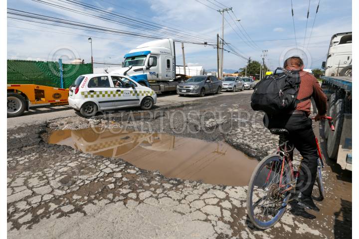 TOLUCA, ESTADO DE MÉXICO, 08AGOSTO2024.- Automovilistas evitan los baches que se encuentran en la avenida Industria Automotriz en la ciudad de Toluca, que con el paso de vehículos pesados y las lluvias se hacen más grandes. FOTO: CRISANTA ESPINOSA AGUILAR /CUARTOSCURO.COM