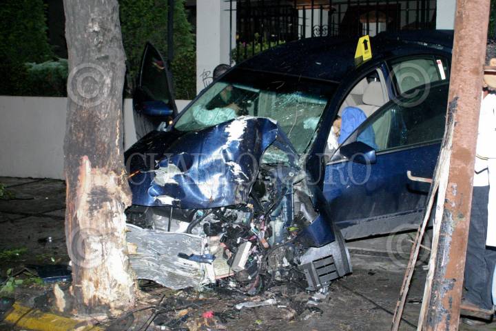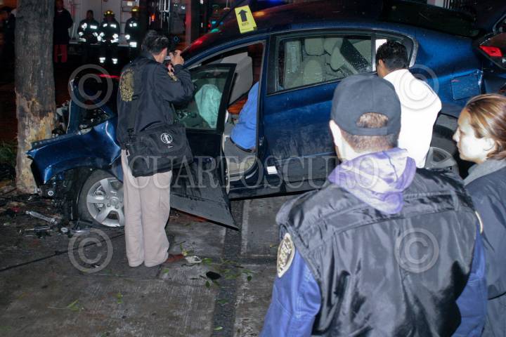 MÈXICO, D.F., 18AGOSTO2008.- En la avenida Insurgentes sur y la calle clavario en la colonia Fuentes Brotantes, un automovil, Altima color azul marino, se estrellò contra un arbol, dejando como saldo una persona muerta de nombre, Eduardo Arce de 25 años y otra lesionada. FOTO: LUZ ACEVEDO/CUARTOSCURO.COM