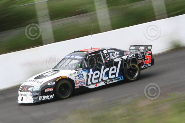 GUADALAJARA, JALISCO., 26JULIO2008.- German Quiroga piloto con el autómovil número cinco corre durante las calificaciones de la 9 fecha dentro del serial Nascar México, realizadas en el trióvalo de Jalisco Bernardo Obregon. FOTO: SÁSHENKA GUTIERREZ/CUARTOSCURO.COM