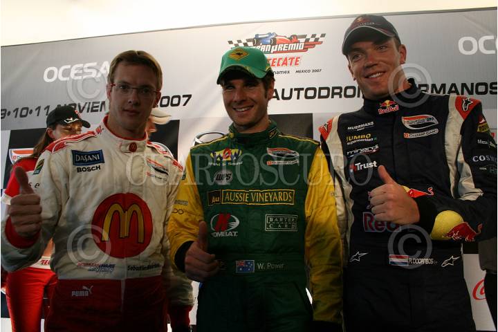 MÉXICO,D,F.,10 NOVIEMBRE2007.- Sebastian Bourdais, Will Power, Robert Doombos son los tres primeros lugares dentro de las clasifcaciones de champ car FOTO: SASHENKA GUTIERREZ/CUARTOSCURO.COM