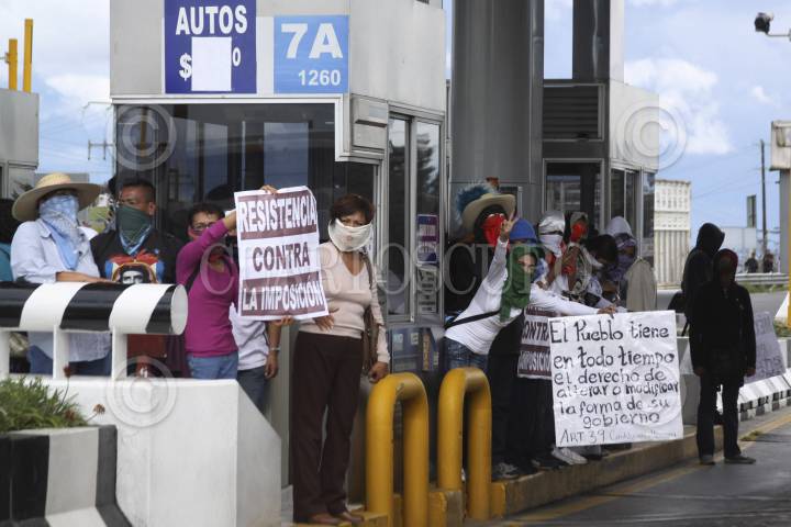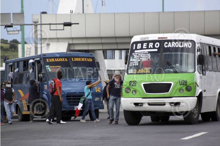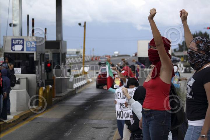 AMOZOC, PUEBLA, 01SEPTIEMBRE2012.- Integrantes del movimiento #YoSoy132 tomaron varios autobuses de transporte público para trasladarse a la caseta de cobro de Amozoc, permitiendo el libre paso sin costo para los automovilistas que circulaban en la zona, esto para manifestarse en contra de la resolución del Tribunal Electoral del Poder Judicial de la Federación que acreditó a Enrique Peña Nieto como Presidente Electo de México. FOTO: HILDA RÍOS /CUARTOSCURO.COM