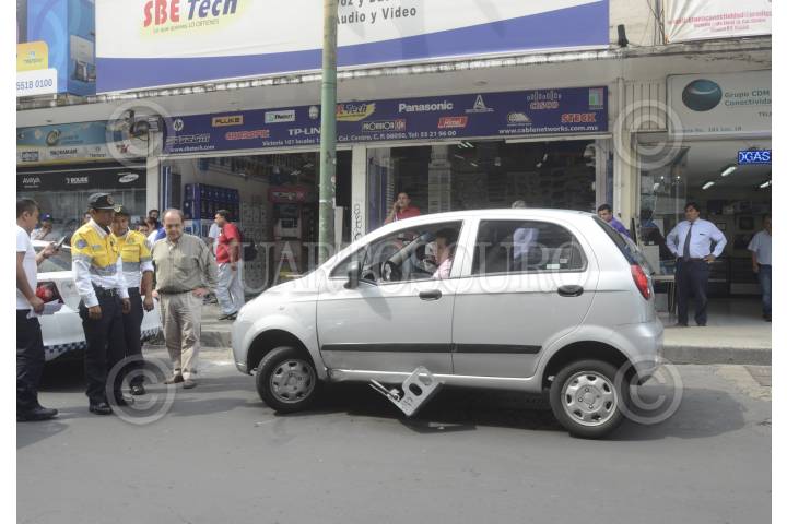 MÉXICO, D.F., 10SEPTIEMBRE2015.- Un conductor que trato de huir para evitar que le colocaran la araña, quedó sobre ella inmovilizado en la calle de artículo 123, en donde un policía resulto lesionado. FOTO: ARMANDO MONROY /CUARTOSCURO.COM