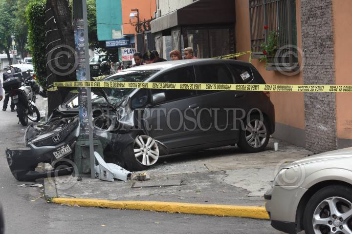 CIUDAD DE MÉXICO, 03JULIO2019.- Una mujer de la tercera edad perdió la vida a consecuencia preliminar de un infarto, lo que provocó que impactara en la pared de una vivienda y posteriormente contra un poste en Bergonias y Calzada Camarones, en la colonia Nueva Santa María, en Azcapotzalco. FOTO: CRISTIAN HERNÁNDEZ /CUARTOSCURO.COM