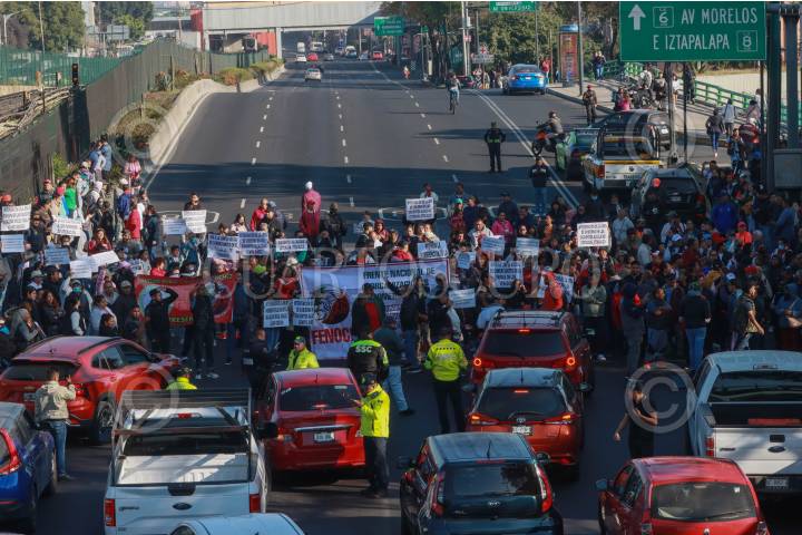 CIUDAD DE MÉXICO, 04DICIEMBRE2024.- Comerciantes ambulantes, quienes fueran retirados del Parque de los Venados, ubicado en la Alcaldía Benito Juárez, realizaron un bloqueo total sobre Avenida Tlalpan y Rio Churubusco, los inconformes exigían una reunión con autoridades del gobierno para solicitar el regreso a sus puntos de venta, supuestamente, previamente regulados. FOTO: ROGELIO MORALES /CUARTOSCURO.COM