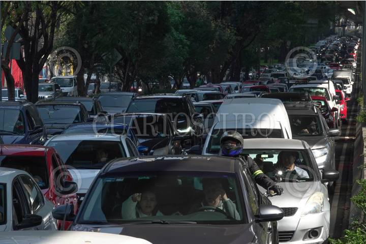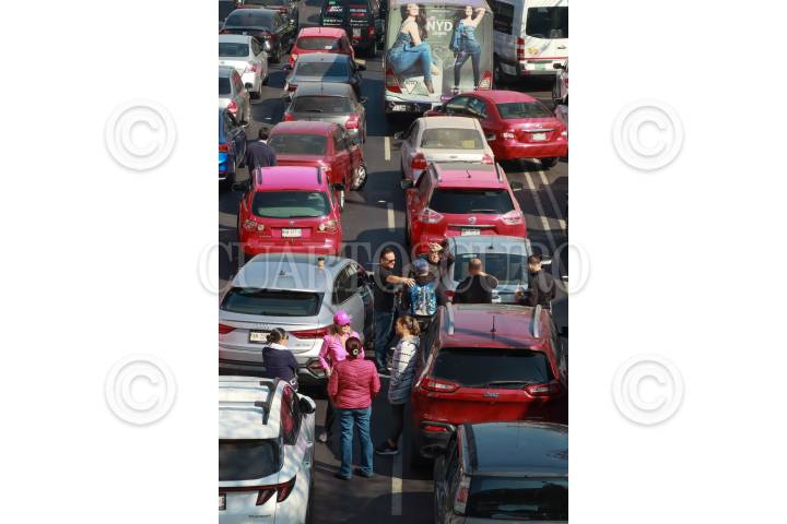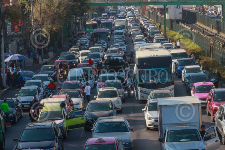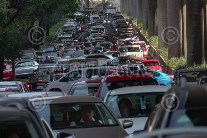 CIUDAD DE MÉXICO, 19AGOSTO2025.- Automóviles rodean un bache que se encuentra sobre la Avenida Francisco del Paso y Troncoso. FOTO: DANIEL AUGUSTO/ CUARTOSCURO.COM