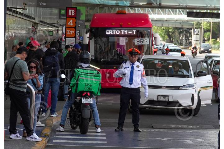 CIUDAD DE MÉXICO, 15FEBRERO2025.- Elementos de la Sub Policía de Tránsito de la Ciudad, comenzaron en operativo de mejoramiento de movilidad al interior y exterior del Aeropuerto Internacional Benito Juárez. FOTO: ROGELIO MORALES/CUARTOSCURO.COM