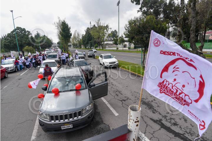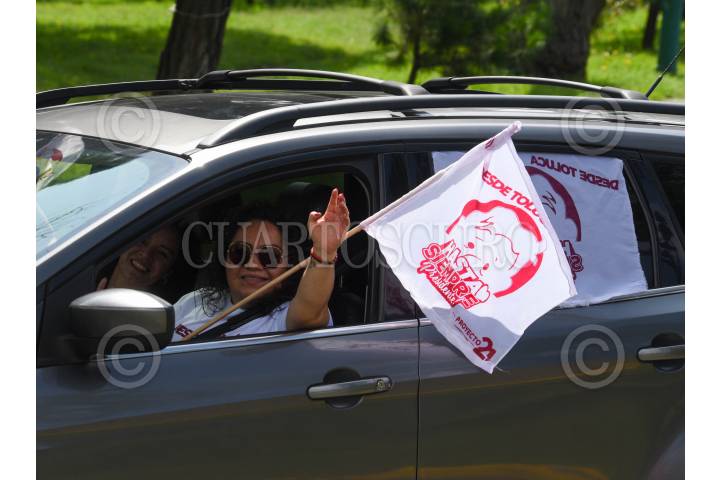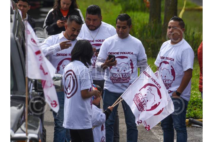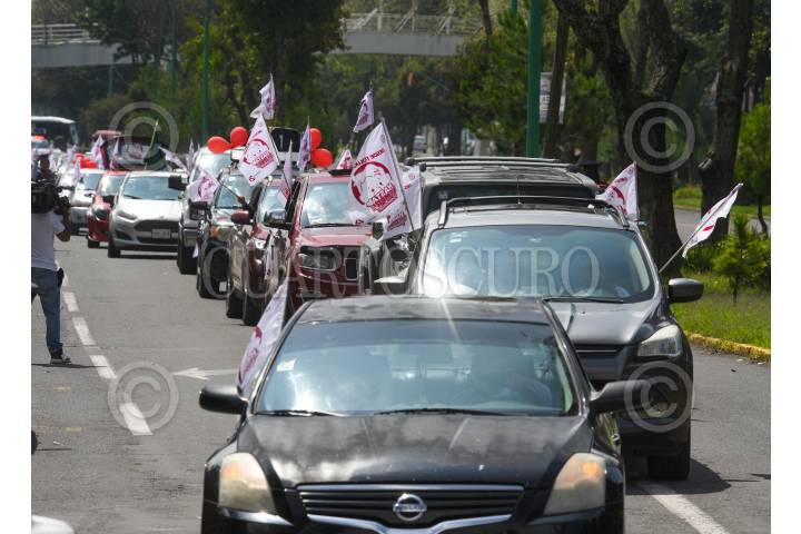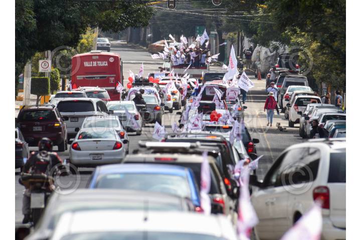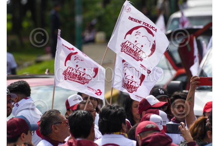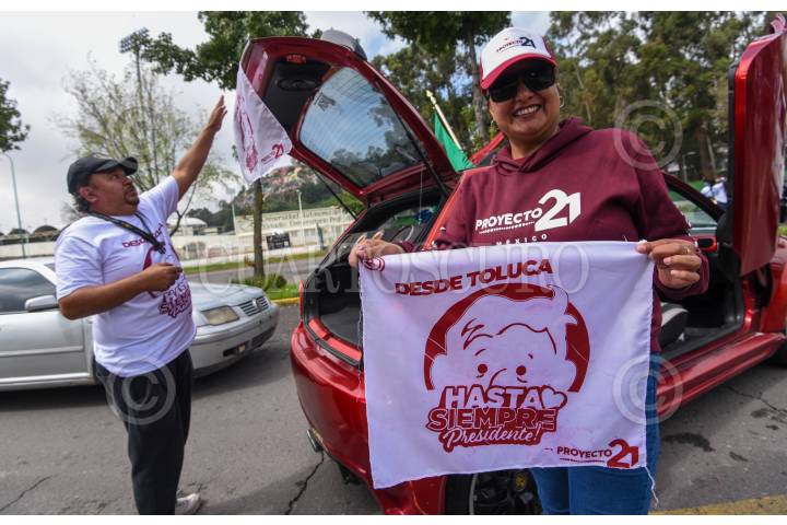 TOLUCA, ESTADO DE MÉXICO, 29SEPTIEMBRE2024.- Con globos, banderas, mantas y playeras con la imagen del Presiente Andrés Manuel López Obrador automovilistas realizaron una caravana para recorrer las calles de Toluca y decirle “Hasta Siempre Presidente” a unos días del cambio de administración, reconociendo el trabajo que realizó durante su sexenio y llamándolo el mejor presidente de México. FOTO: CRISANTA ESPINOSA AGUILAR /CUARTOSCURO.COM