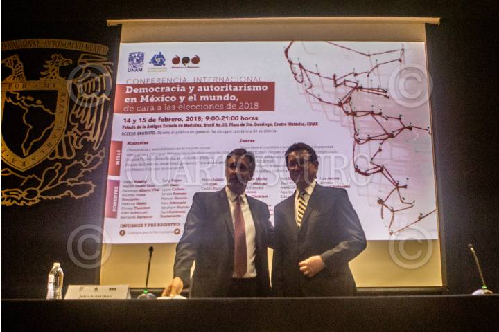 CIUDAD DE MÉXICO, 14FEBRERO2018.- John Ackerman, y Domingo Alberto Vital, durante la conferencia internaciona Democracia y autoritarismo en México y el mundo. FOTO: TERCERO DÍAZ /CUARTOSCURO.COM