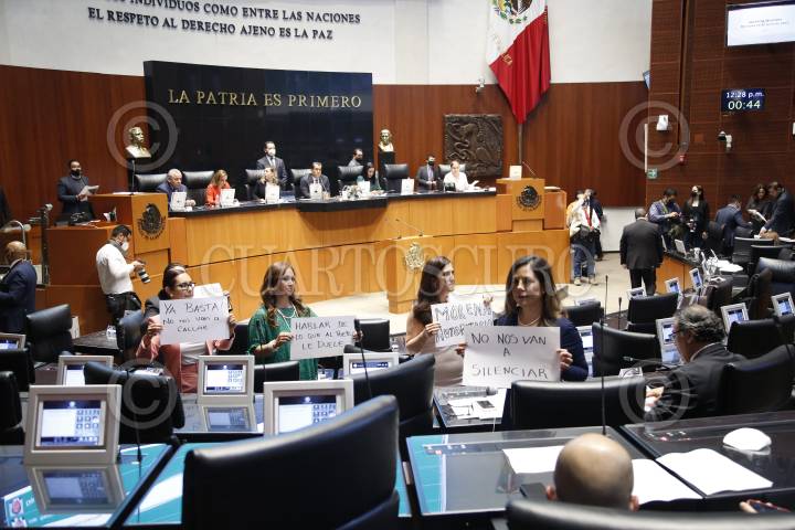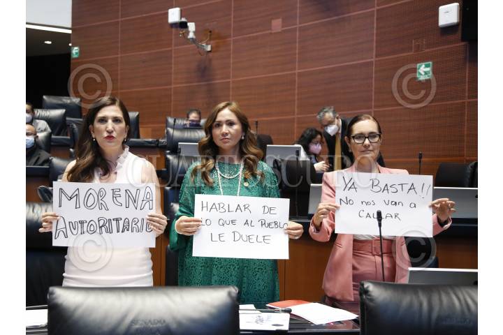Panistas se manifestaron en contra de Morena durante la Comisión Permanente, a quien calificaron de autoritario y de querer callarlas.