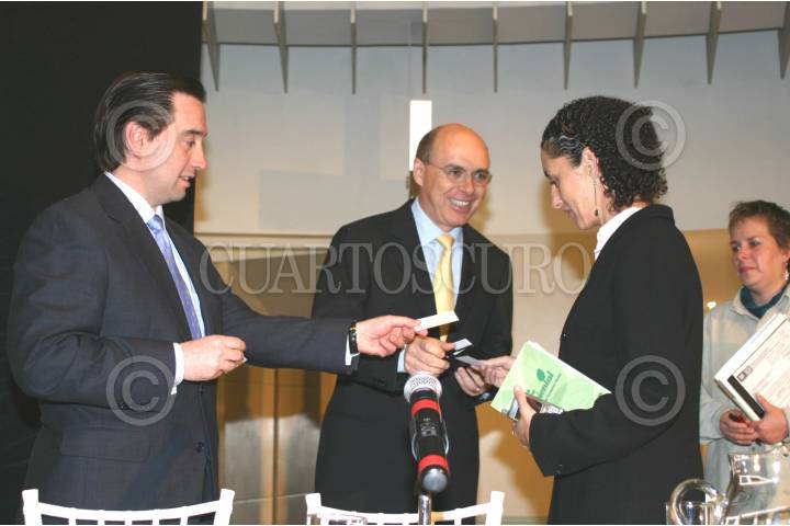 MÈXICO,D.F.30MARZO2006.- Intercambio de tarjetas entre los directivos de Lexmark International de Mèxico Inc. y Claudia Sheinbaum Pardo, Secretaria del Medio Ambiente durante la conferencia de prensa donde se dio a conocer la autorizaciòn del "Plan de Manejo de Cartuchos Vacìos" a la compañía Lexmark. Foto: M. Tulia Pèrez Bocanegra/CUARTOSCURO.COM