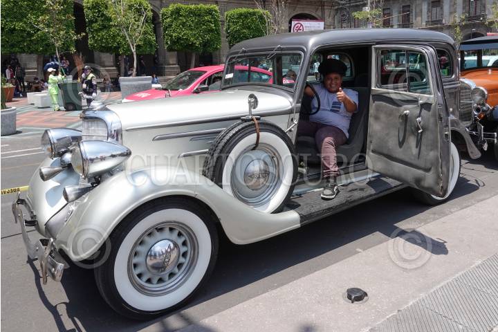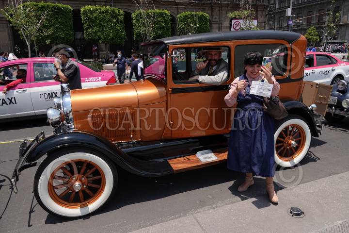 Capitalinos se tomaron selfies con autos clásicos antiguos de los años 20’s en el Zócalo capitalino
