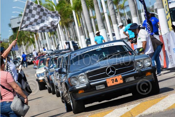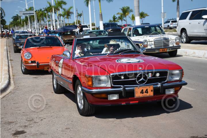 Salida de 120 vehículos clásicos que participan en la novena edición del Rally Maya 2023, recorrerán más de mil cien kilómetros por los estados de Campeche, Yucatán y Quintana Roo.