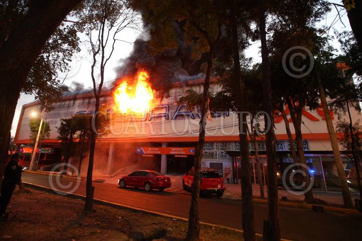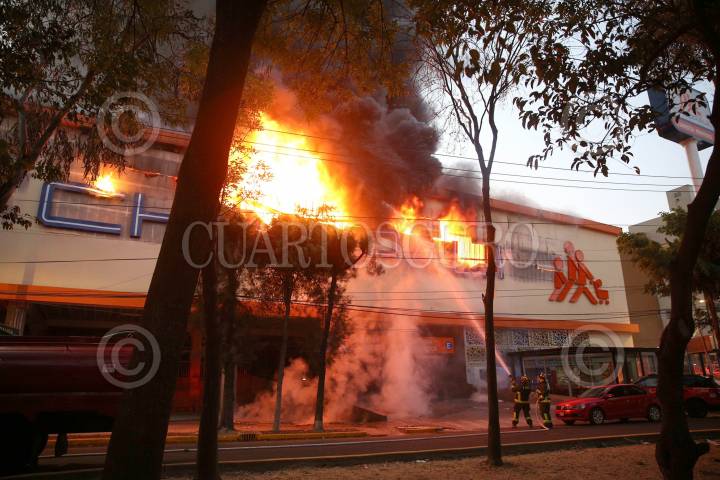 CIUDAD DE MÉXICO., 09MARZO2018.- Fuerte incendio se registró al interior de la tienda Chedraui de plaza Tepeyac, el cual se propago a causa de la explosión de un tanque estacionario, consumiendo casi en su totalidad dicha tienda. Al lugar, acudieron bomberos de varias delegaciones incluidas Xochimilco y Tláhuac. FOTO: LUIS CARBAYO /CUARTOSCURO.COM