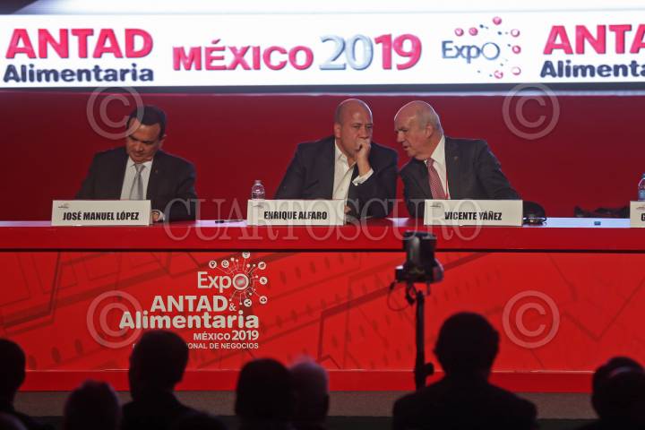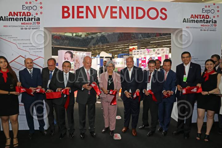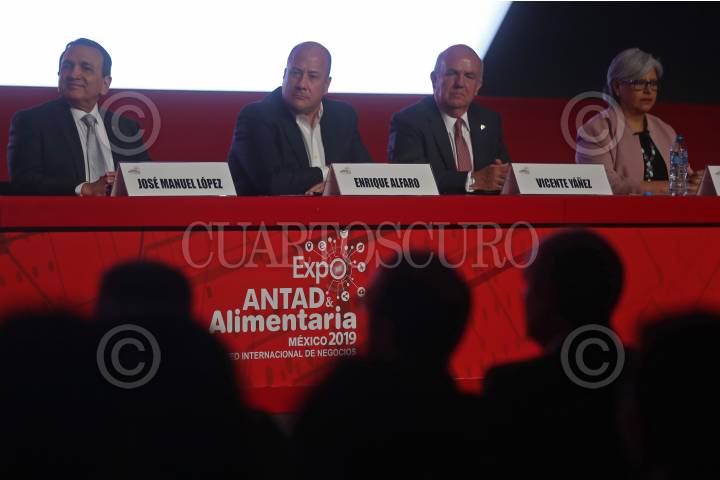 GUADALAJARA, JALISCO, 05-MARZO DE 2019.- Graciela Márquez Secretaria de Economía Federal, Enrique Alfaro Gobernador del Estado y Vicente Yáñez Presidente de la Asociación Nacional de Tiendas de Autoservicios (ANTAD), encabezaron la inauguración de Expo ANTAD Alimentaria 2019, esto en evento que se llevo a cabo en las instalaciones de la Expo Guadalajara. FOTO: FERNANDO CARRANZA GARCIA / CUARTOSCURO.COM