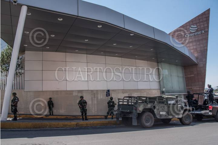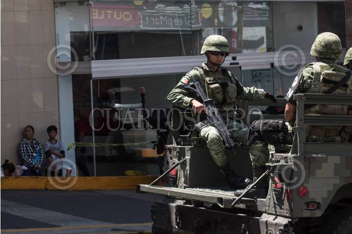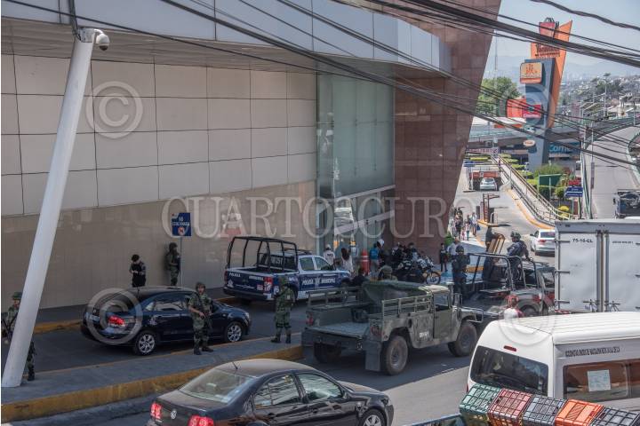 Elementos de la policía municipal y militares, realizan constantes operativos en centros comerciales para prevenir saqueos.