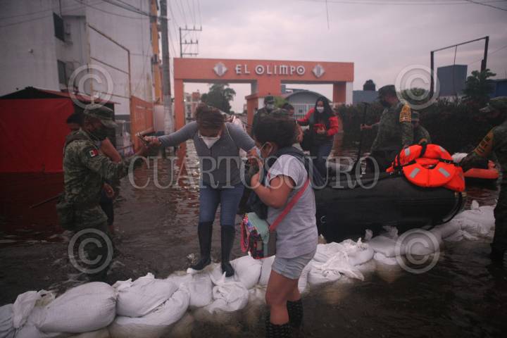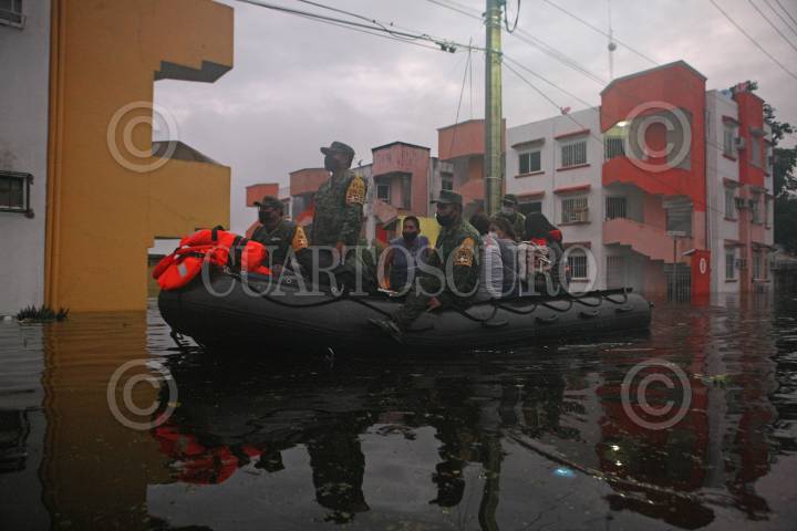 Soldados de la compañía Buzos de Combate de Fuerzas Especiales de la SEDENA ayudan a la población de las rancherías Ixtacomitan, Río Viejo y Boqueron, las cuales están inundadas debido a las lluvias de los últimos días. El Ejército Mexicano a des