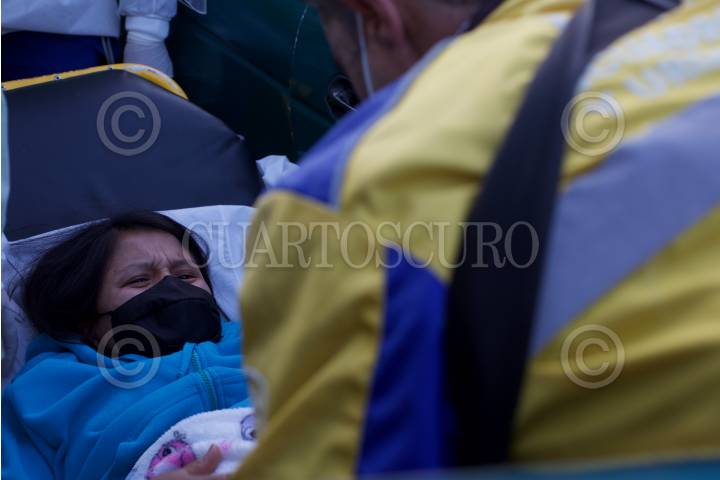 Una paramédica muestra los elementos con los que se encuentra equipada la ambulancia.