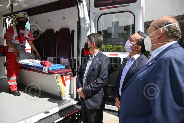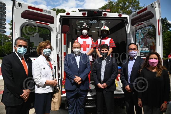 Fernando Suniaga, presidente nacional de la Cruz Roja Mexicana y Mario Valdés, director general de MetLife México, encabezaron la presentación de las ambulancias.