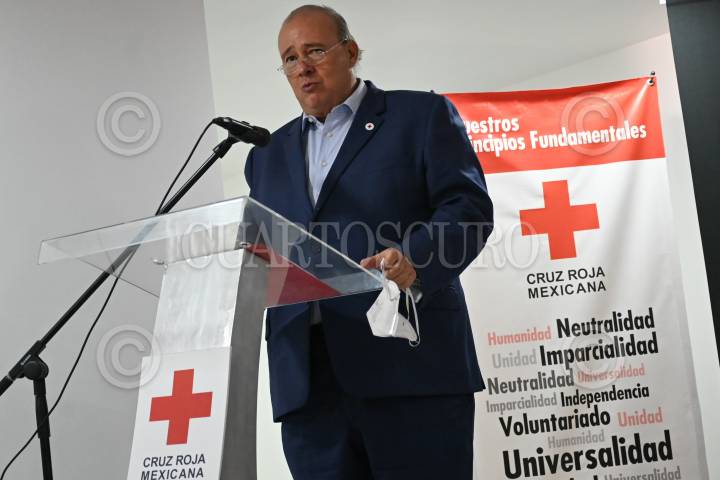 Fernando Suniaga, presidente de la Cruz Roja Mexicana, durante su participación en la conferencia.