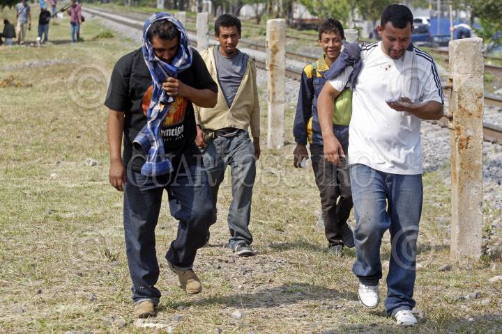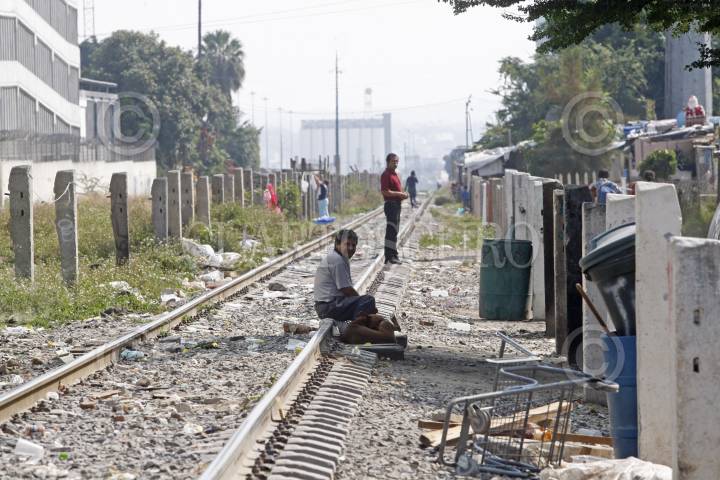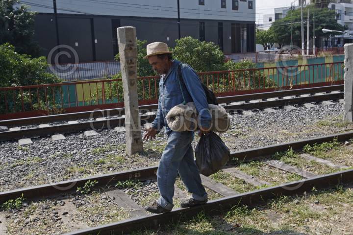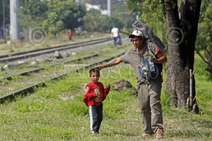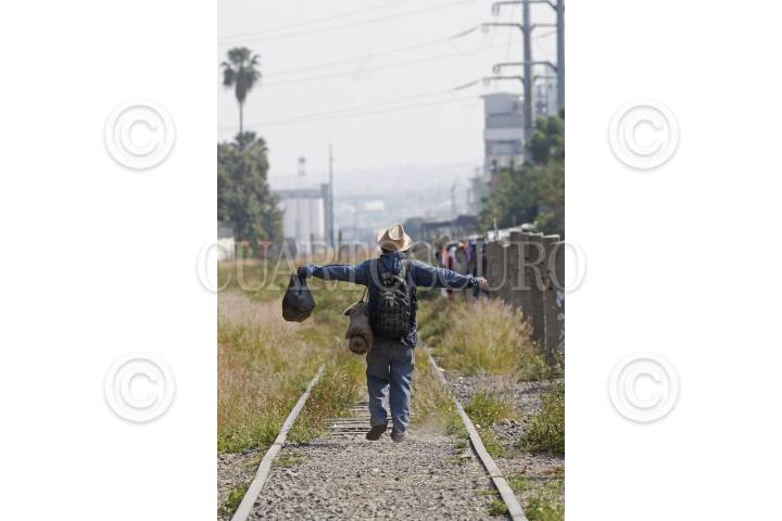 GUADALAJARA, JALISCO. 21NOVIEMBRE2015.- Migrantes caminan por la vías del tren, esto en Av. Inglaterra a la altura de la calle calderón de la Barca. FOTO: FERNANDO CARRANZA GARCIA / CUARTOSCURO.COM