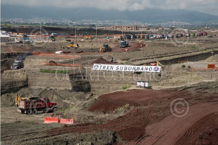 Trabajadores realizan sus actividades en la construcción del Aeropuerto Internacional Felipe Ángeles (AIFA).