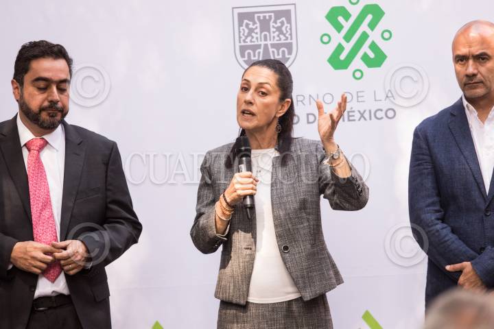 CIUDAD DE MÉXICO, 29JULIO2019.- Vidal Llerenas, alcalde de Azcapotzalco; Claudia Sheinbaum, jefa de Gobierno y Rafael Carmona Paredes, coordinador General de Sistema de Aguas durante la explicación de la inversión de la obra en la avenida Ceylán, la cual es de alrededor de 200 millones de pesos, con el próposito de cambiar el drenaje de agua potable y tratarla como una instalación de concreto hidráulico, así mismo se tiene previsto que se concluya en noviembre. FOTO: GRACIELA LÓPEZ /CUARTOSCURO.COM