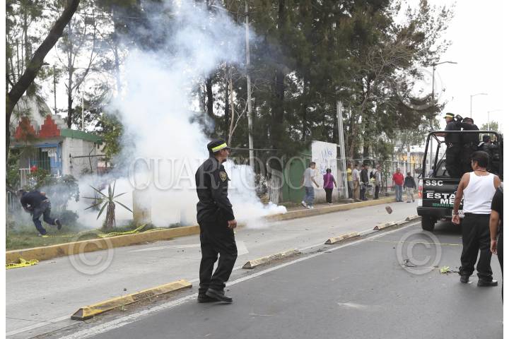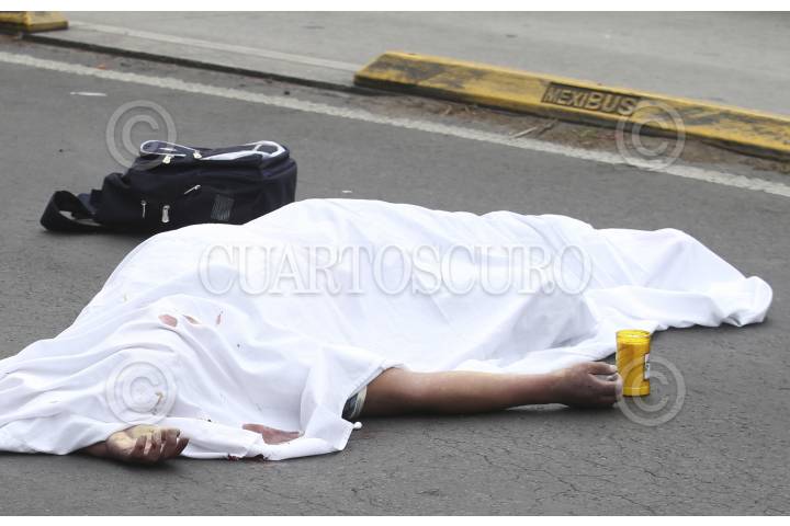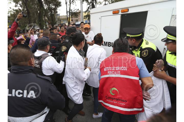 NEZAHUALCÓYOLT, EDOMEX, 05JUNIO2015.- Un joven de 25 años murió atropellado por una patrulla de la Comisión Estatal de Seguridad Pública con número económico 08759, en el cruce de la avenida Chimalhuacán esquina lago Chalco en la Colonia Agua Azul. Vecinos presenciales indignados por lo ocurrido pretendían asegurar a los policías pero compañeros del mismo rápidamente los retiraron de la escena del crimen. FOTO: ARMANDO MONROY /CUARTOSCURO.COM