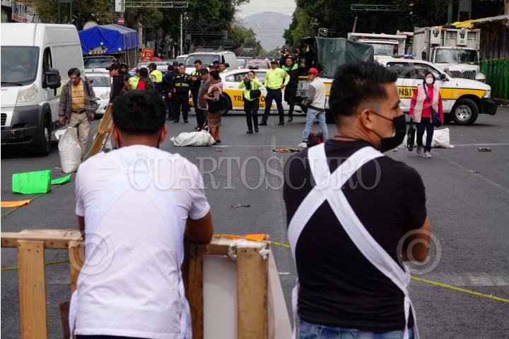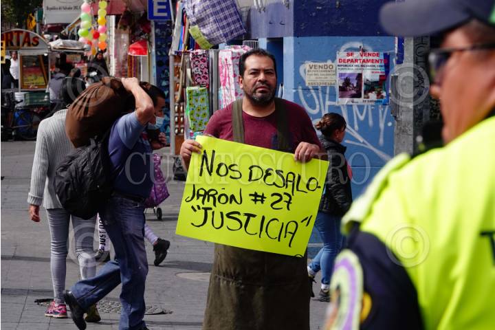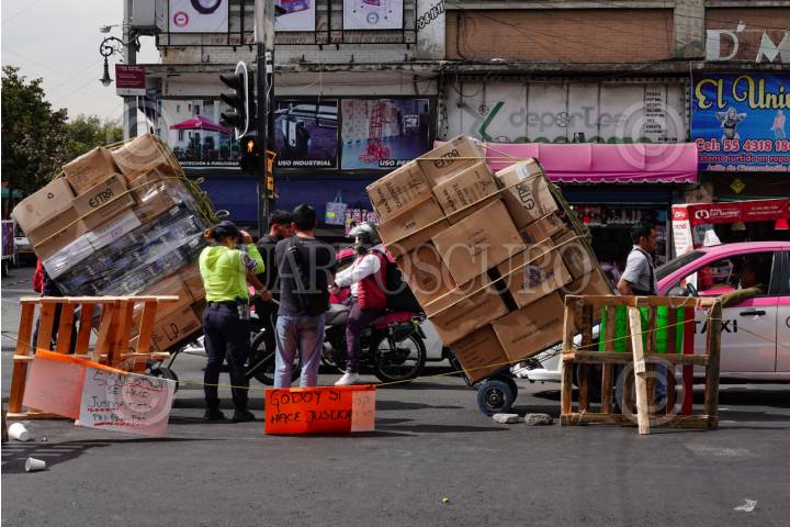 CIUDAD DE MÉXICO, 09ENERO2025.- Comerciantes de un predio marcado con el número 27 en la calle General Anaya, bloquearon Avenida Circunvalación, debido a un supuesto desalojo ilegal en la Colonia Merced de la Alcaldía Venustiano Carranza. FOTOS: ROGELIO MORALES /CUARTOSCURO.COM