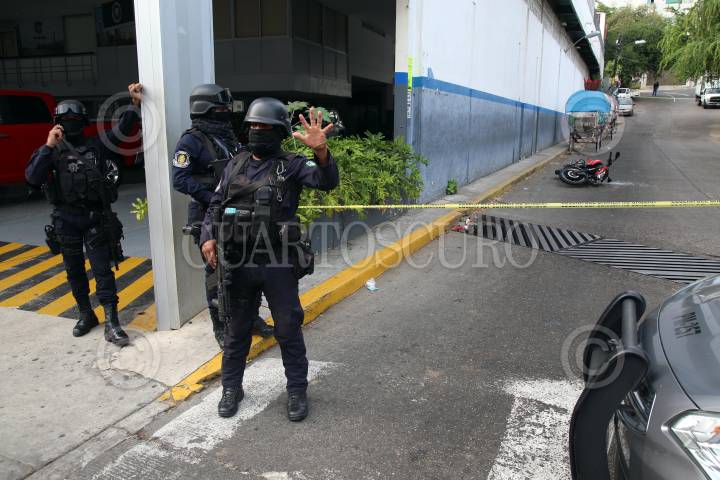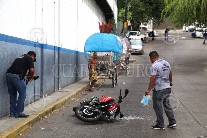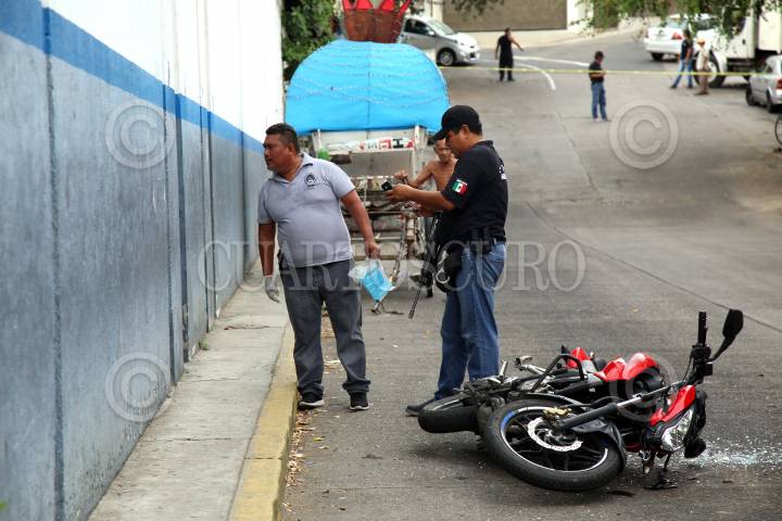 ACAPULCO, GUERRERO, 17ENERO2019.- Hombres armados protagonizaron una persecución a balazos sobre la avenida Cuauhtémoc en Acapulco, durante el tiroteo algunas balazos empataron las paredes de algunos locales comerciales cercanos y una motocicleta en donde se trasladaban los delincuentes quedo tirada en el lugar. FOTO: CARLOS ALBERTO CARBAJAL /CUARTOSCURO.COM