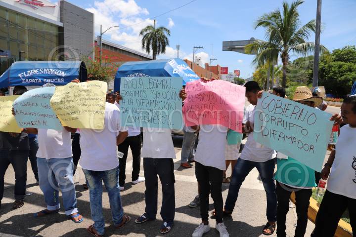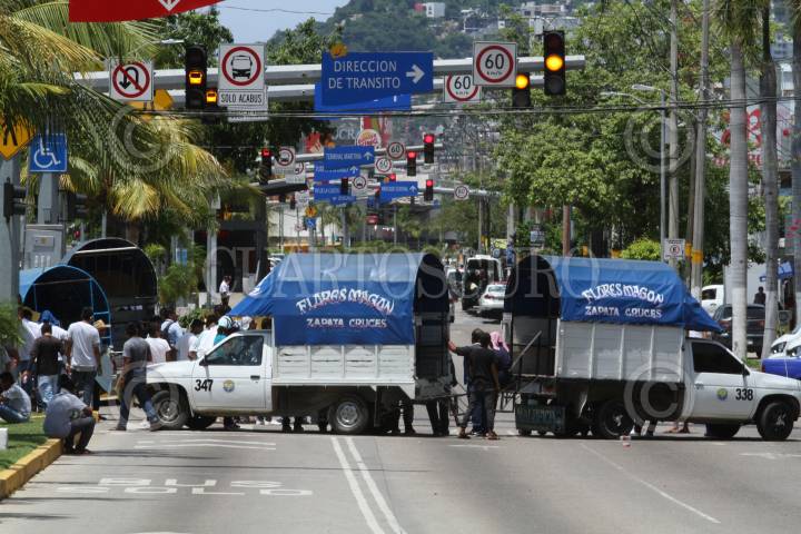 ACAPULCO, GUERRERO, 13AGOSTO2019.- Integrantes de la Unión de Auténticos Automovilistas Revolucionarios Emiliano Zapata, en su mayoría choferes de camionetas de rutas de la periferia de Acapulco, bloquearon durante aproximadamente dos hora ambos sentidos de la avenida Cuauhtémoc, a la altura de la calle Caminos, acceso a las instalaciones de la Fiscalía General del Estado, para exigir la liberación de dos jóvenes detenidos el pasado lunes durante un operativo policial realizado en la colonia Zapata. FOTO: BERNANDINO HERNÁNDEZ /CUARTOSCURO.COM