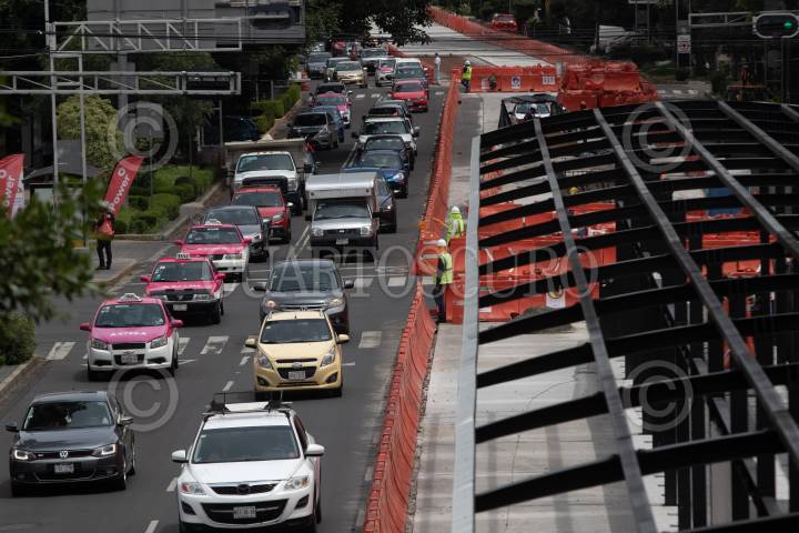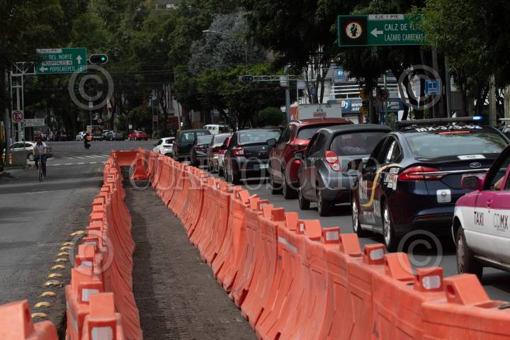 Caos vial en avenida Cuauhtémoc luego de que se ha reducido a dos carriles la circulación debido a las obras de ampliación del Metrobus Línea 3.