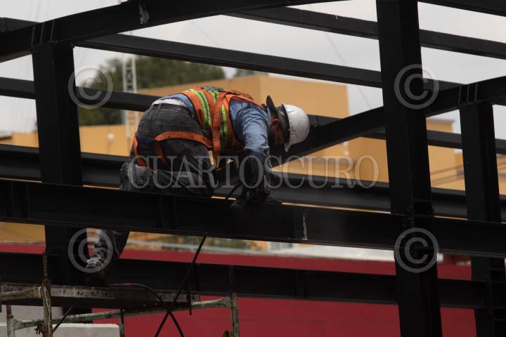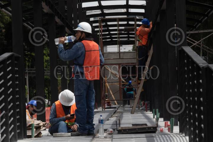 Obreros terminan una de las estaciones del Metrobus Línea 3 en avenida Cuauhtémoc.
