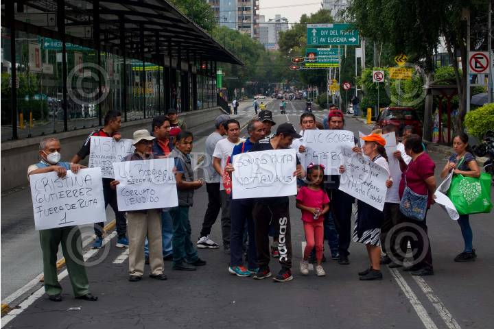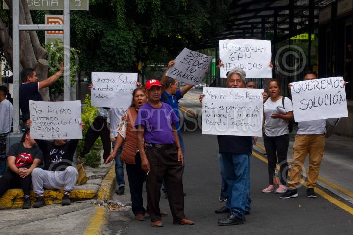 Bloqueo de comerciantes en Avenida Eugenia y Avenida Cuauhtémoc.