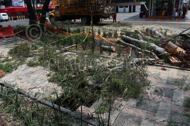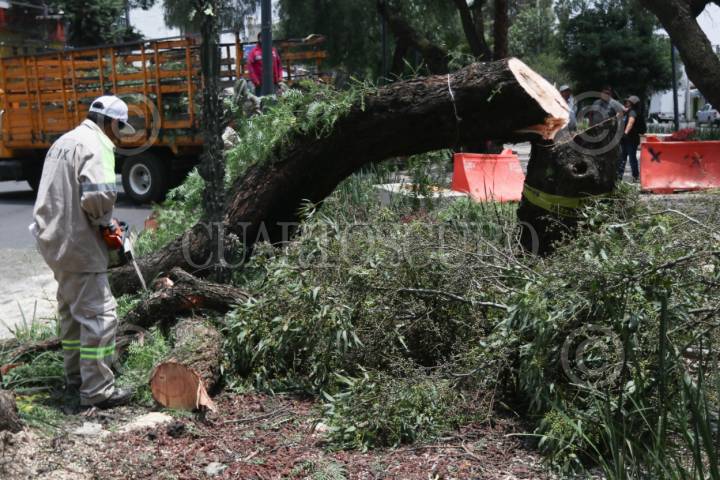 CIUDAD DE MÉXICO, 25AGOSTO2025.- Tras la apertura de un socavón de 6 metros el pasado sábado en avenida Talismán, cerca del cruce con Eduardo Molina, trabajadores de la alcaldía Gustavo A. Madero retiraron los árboles ubicados en la zona afectada. FOTO: GRACIELA LÓPEZ/CUARTOSCURO.COM