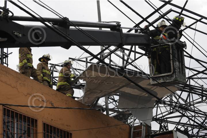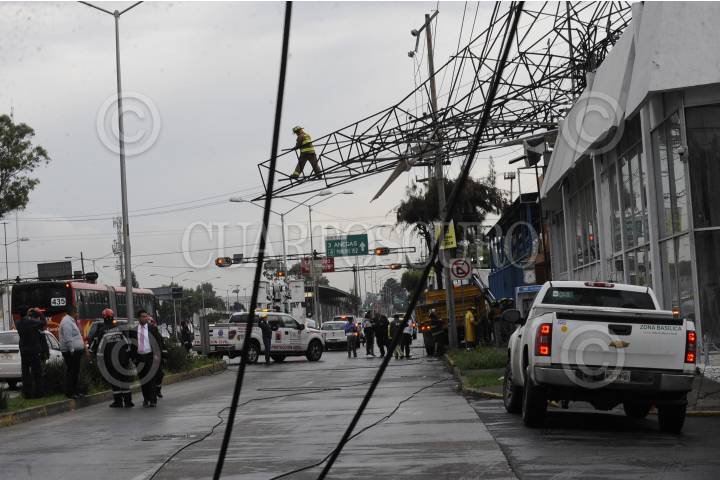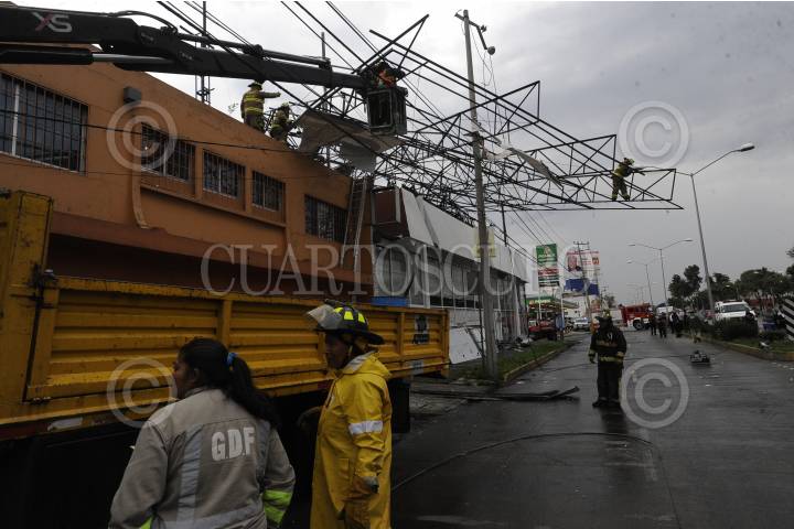 MÉXICO, D.F., 27MAYO2015.- Sobre avenida Vallejo y Poniente 128 en la delegación Gustavo A. Madero cayo un espectacular por los fuertes vientos que se registraron esta tarde en la ciudad. FOTO: ARMANDO MONROY /CUARTOSCURO.COM