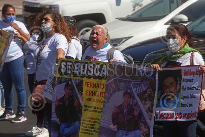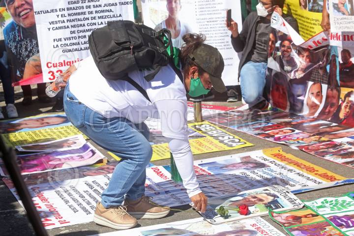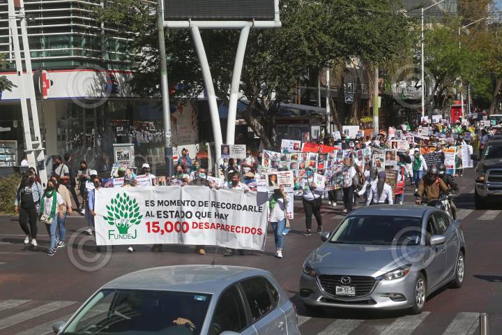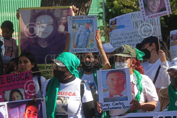 Familiares de personas desaparecidas, durante la manifestación y marcha para exigir al Gobierno en turno agilizar el proceso de búsqueda de sus seres queridos.