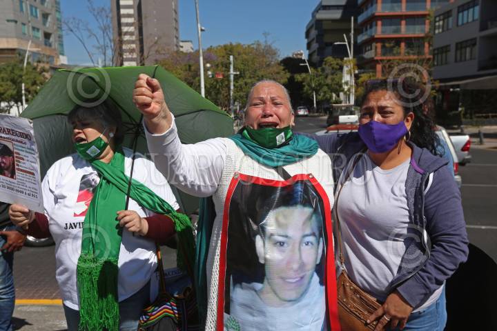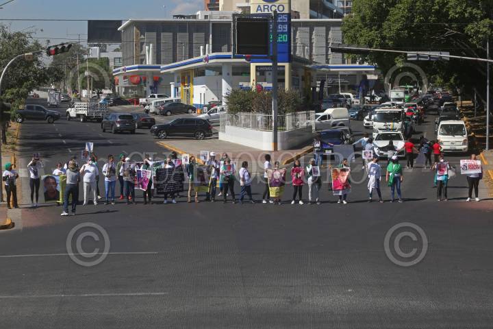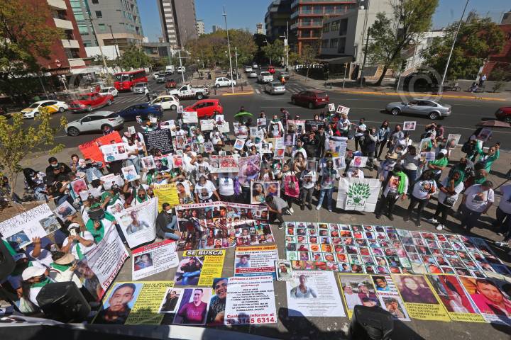 Familiares de personas desaparecidas, durante la manifestación y marcha donde bloquearon algunas avenidas principales de la Glorieta de los Desaparecidos, esto para exigir al Gobierno en turno agilizar el proceso de búsqueda de sus seres queridos.